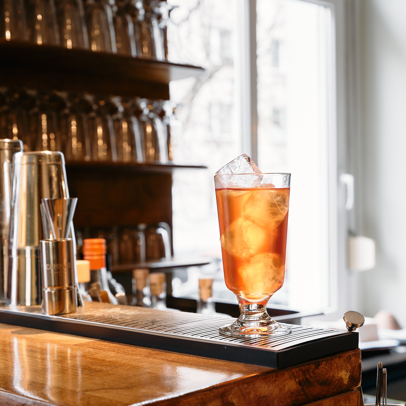 Das Herzstück von Schwips ist ein Konzept, das sich sehr aktuell anfühlt: Zero-Waste-Basen, die im Haus hergestellt werden, oft aus Restprodukten, saisonalen Früchten und geretteten Zutaten. Jede Basis kann dann auf verschiedene Arten genossen werden – als Mocktail, als Kir mit (oder ohne) Bläschen, als Longdrink oder als etwas Martini-ähnliches. Eine Basis, viele Ausdrucksformen. Kein Druck – nur Handwerkskunst.