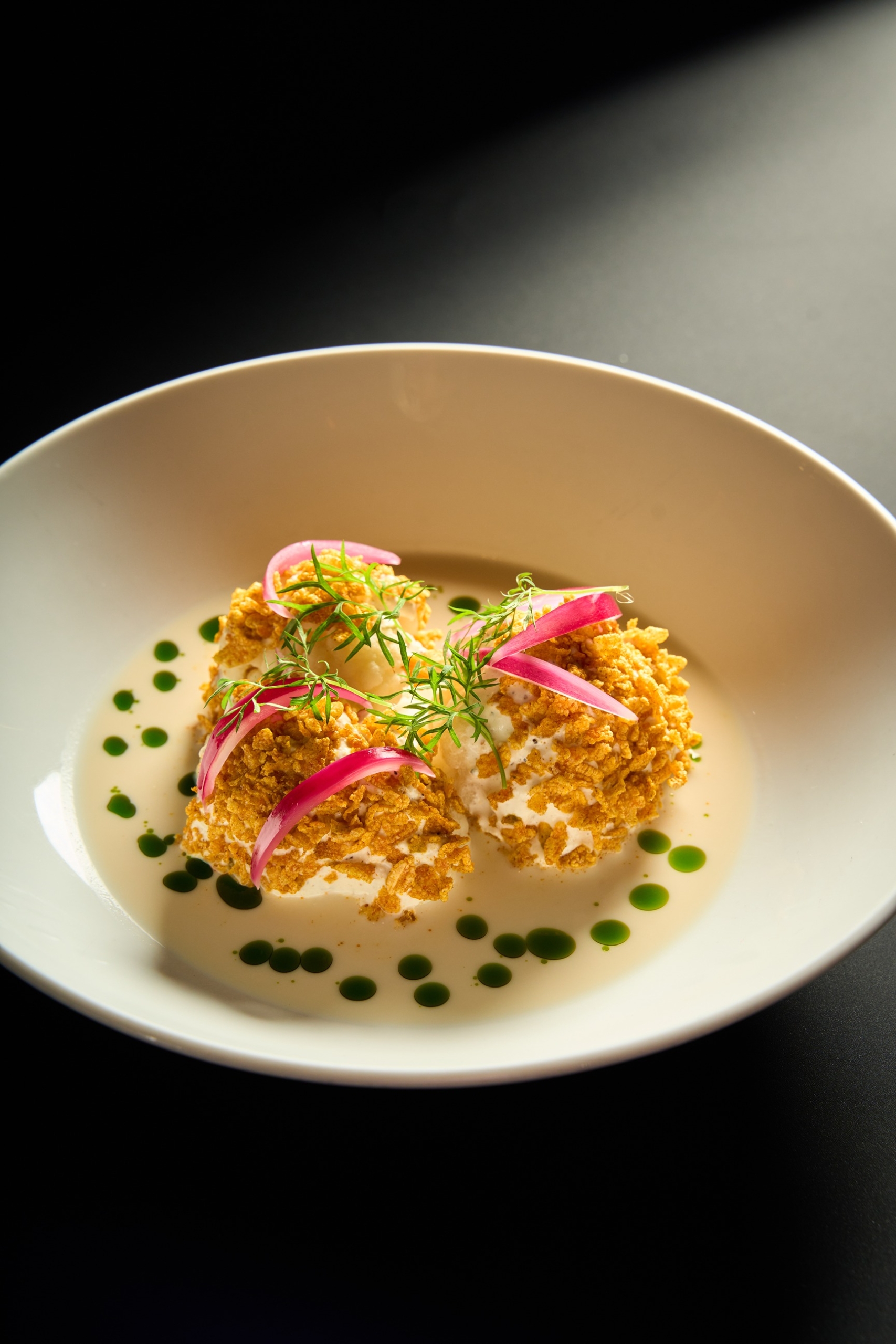 Auf der herzhaften Seite erwarten dich Gerichte wie Tempura-Blumenkohl mit roten Zwiebeln, Koriander und Zitronengras, Rosenkohl mit Kichererbsen, schwarzen Johannisbeeren und Wirsing mit Champignons, Walnüssen und Kumquats – herzhaft, wärmend und voller Textur. Und weil man im Veganuary das Dessert nicht auslassen sollte, servieren wir auch vegane süße Nachspeisen: Schokolade mit Kirsche, Haselnuss und Popcorn, Rum Pot mit Beeren und Tonkabohne und Apfel mit Zimt, Pekannuss und Karamell. Einfach köstlich!